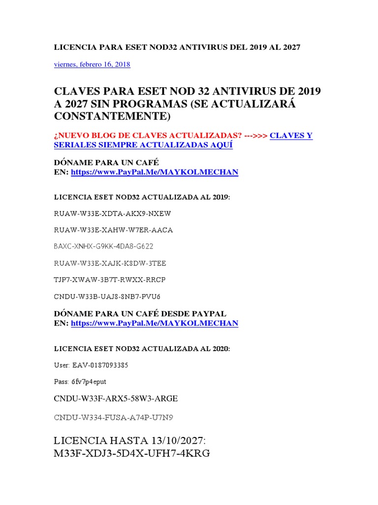Licencia eset nod32 antivirus hasta 2020